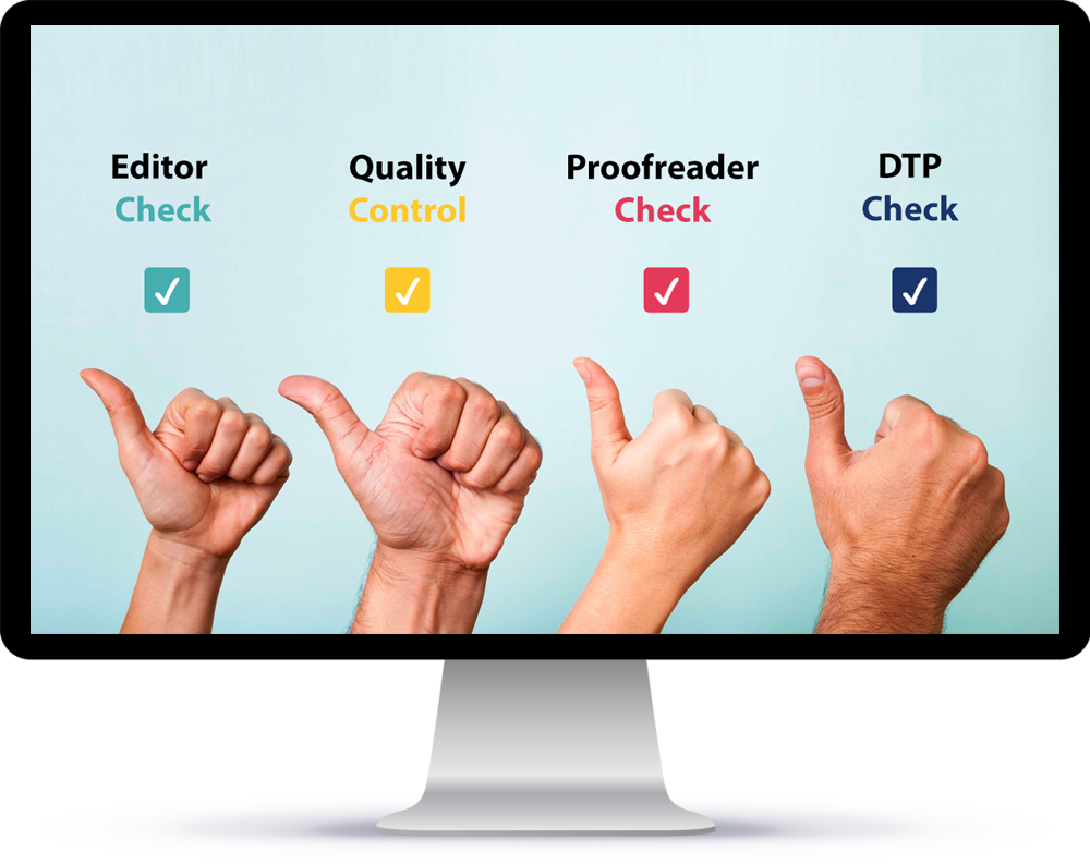 For a quality guaranteed translation, we usually suggest our clients to implement our 4-stage quality control step where we process a text through the steps of translation, editing, proofreading and desktop publishing. Once a text is translated, it is forwarded to our editors experienced in the related subject matter where a bilingual review is performed and the translation is checked against missing translations, incorrect translations, terminology errors. When the editing step is complete, the edited file is sent to a proofreader.  Being a native speaker of the target language, the proofreader further improves the linguistic quality of the same text. When linguistic checks are all complete, the document is reviewed for its formatting and prepared for delivery by our DTP team